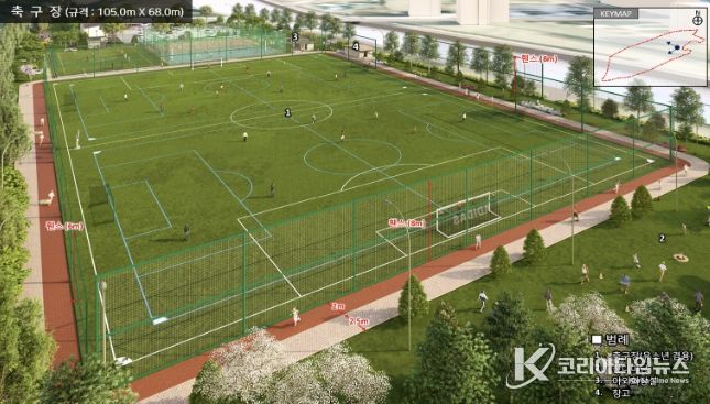 특히 이 가운데 가로 105m, 세로 68m의 국제 규격을 갖춘 축구장이 포함돼 있어 생활 축구 동호인과 주민들의 기대가 한층 커지고 있다.