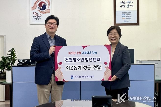 코리아타임뉴스 사회팀 | 천천청소년청년센터는 지난 7일, 청소년·청년들이 직접 기획하고 운영한 펀딩 프로젝트를 통해 마련한 수익금 314,500원을 지역 내 어려운 이웃을 위해 써달라며 정자3동 행정복지센터에 기부했다.