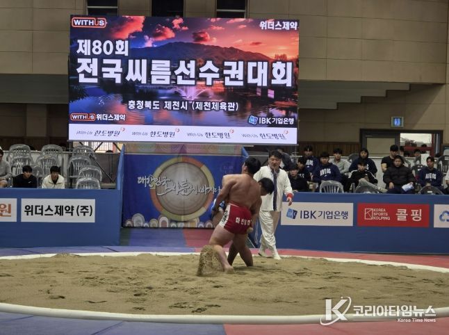코리아타임뉴스 충북취재본부 | 대한씨름협회가 주최하고 제천시와 제천시체육회가 후원한 제80회 전국씨름선수권대회가 전문선수 120개 팀, 1,075명이 참가한 가운데 제천체육관에서 성황리에 마무리됐다.