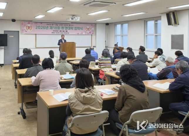 코리아타임뉴스 김태훈 기자 | 제18회 용담호 환경대학 입학식이 9일 진안 군민자치센터 강당에서 수강생 30여 명이 참석한 가운데 개최됐다.
