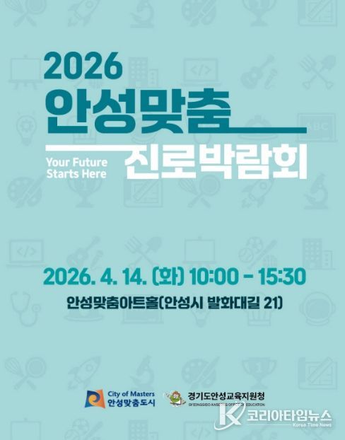 코리아타임뉴스 경기취재본부 | 안성시는 오는 4월 14일 안성맞춤아트홀에서 관내 청소년들의 자기주도적 미래 설계를 지원하기 위한 ‘2026 안성맞춤 진로박람회’를 개최한다고 밝혔다.