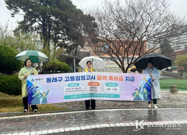 코리아타임뉴스 부산취재본부 | 부산 동래구는 학교 밖 청소년들의 학력 취득을 격려하고 새로운 시작을 응원하기 위해 ‘2026년도 고등 검정고시 합격 축하금 지원 사업’을 본격 추진한다고 밝혔다.