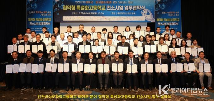 코리아타임뉴스 사회팀 | 인천광역시교육청은 지난 9일 송도 홀리데이인 호텔에서 ‘협약형 특성화고등학교 컨소시엄 업무협약식’을 개최했다.