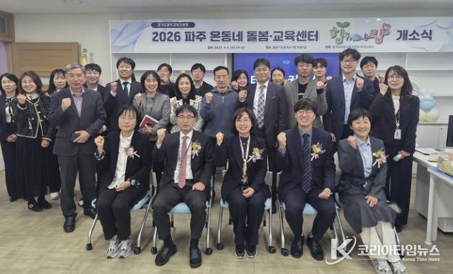 코리아타임뉴스 사회팀 | 경기도파주교육지원청은 4월 8일, 물향기초등학교 내 파주 온동네 돌봄·교육센터 ‘함께자람’ 개소식을 개최했다. ‘함께자람’은 학교 안팎의 다양한 지역자원을 연계해 초등학생에게 정규수업 이후 돌봄·교육 통합 서비스를 제공하여 학생들이 함께 성장할 수 있도록 지원하는 지역 거점형 센터이다.