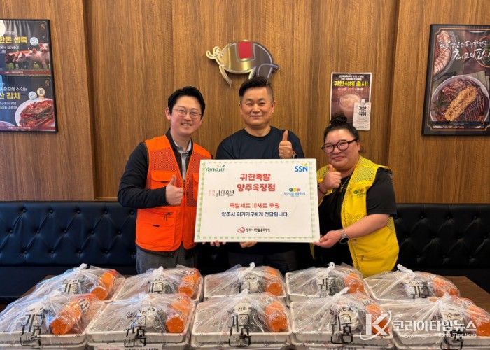 코리아타임뉴스 윤광희 기자 | 지난 9일, 양주시무한돌봄희망팀은 양주시상인회협동조합의 연계로‘귀한족발 옥정점’을 통해 족발 10세트를 취약계층 및 위기가구에게 전달했다.