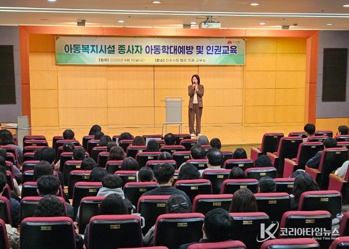코리아타임뉴스 김태훈 기자 | 전주시는 10일 시청 별관 15층 강당에서 전주지역 아동복지시설 종사자 130여 명이 참석한 가운데 ‘아동학대 예방 및 인권 교육’을 실시했다.