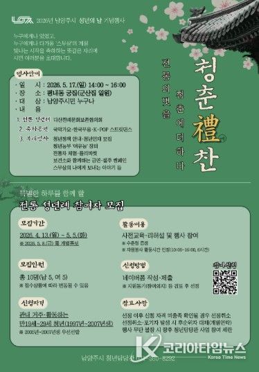 코리아타임뉴스 경기취재본부 | 남양주시는 성년의 날을 앞두고 전통 성년례 행사에 참여할 청년을 모집한다고 10일 밝혔다.