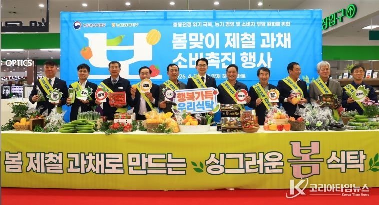 코리아타임뉴스 오영주 기자 | 김종구 농림축산식품부 차관은 4월 10일 서울시 서초구에 소재한 농협 하나로마트 양재점을 찾아 최근 중동전쟁에 따른 국제유가 상승과 농자재 가격 인상 등으로 어려움을 겪고 있는 농업 현장 의견을 청취하고, 농가 경영 부담 완화와 과채류 수급 안정 방안을 논의하기 위한 간담회와 과채 소비 촉진 행사를 개최했다.
