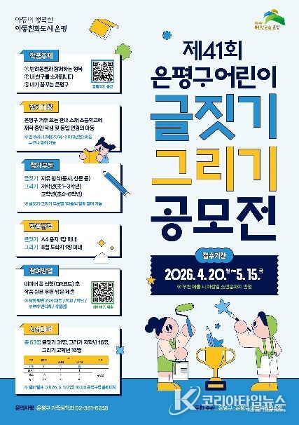 코리아타임뉴스 오영주 기자 | 서울 은평구는 어린이주간이 포함된 5월을 맞아, 은평구 거주 아동을 대상으로 ‘제41회 은평구 어린이 글짓기·그리기 공모전’을 개최한다고 밝혔다.