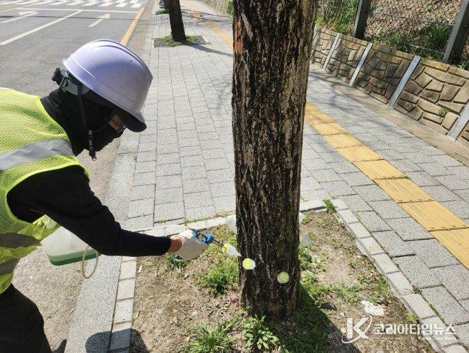 코리아타임뉴스 사회팀 | 용인특례시 처인구는 은행나무 가로수에 친환경 결실 제어제를 주입해 열매 악취로 인한 문제를 해소한다고 13일 밝혔다.