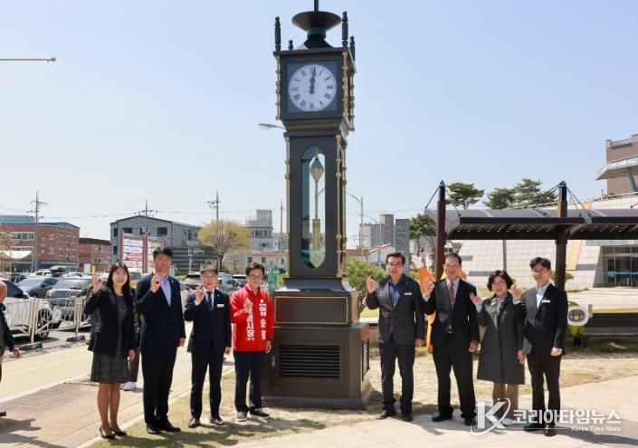 코리아타임뉴스 충남취재본부 | 보령시는 시민들에게 정확한 시간 정보를 제공하고 지역의 새로운 랜드마크를 조성하기 위해 시계탑을 건립하고 13일 제막식을 개최했다.