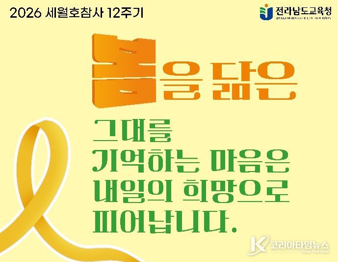 코리아타임뉴스 사회팀 | 전라남도교육청은 세월호 참사 12주기를 맞아 ‘기억을 넘어, 행동으로 실천하는 안전교육’을 주제로 2주간 교육주간을 운영한다.