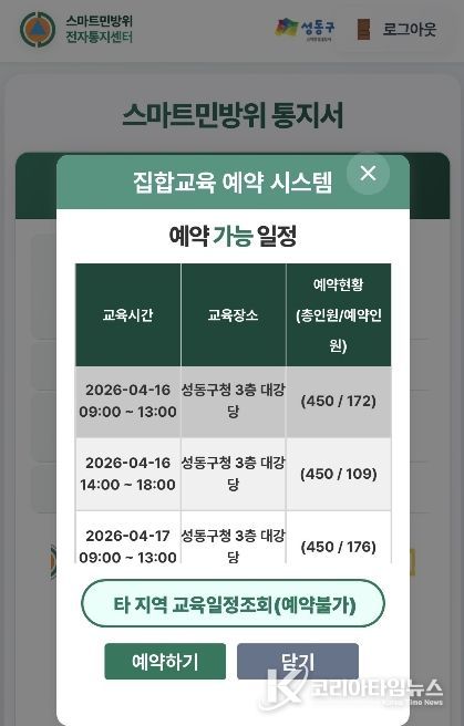 코리아타임뉴스 오영주 기자 | 서울 성동구는 민방위 대비 태세 강화를 위해 성동구 소속 민방위 대원을 대상으로 ‘2026년 상반기 민방위 교육’을 실시한다고 밝혔다.