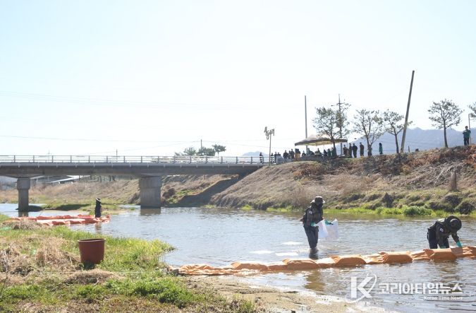 코리아타임뉴스 이아름 기자 | 홍천군은 4월 7일 남면 송내교 일대에서 대규모 유류 유출 사고를 가정한 ‘수질오염사고 민관군 합동 대응 훈련’을 실시했다고 밝혔다.