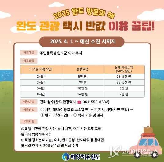 코리아타임뉴스 이아름 기자 | 완도군이 4월부터 ‘완도 관광 택시’를 본격 운영한다.