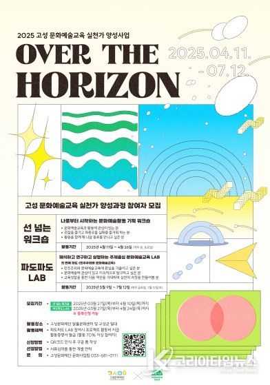 모집 기간은 '선 넘는 워크숍'은 4월 10일까지, '파도파도 LAB'은 4월 24일까지이다. 과정별 자세한 사항은 고성문화재단 누리집 및 SNS를 통해 확인하면 된다.
