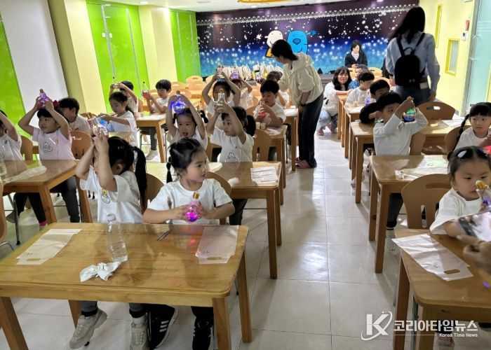 유아들은 마리모 어항 만들기 체험을 한 후 모험의 숲, 빛의 숲, 운동의 숲 등에서 다양한 체험을 했다. 점심 식사 후에는 사계절과 상상놀이를 형상화한 복합문화 놀이터에서 신나게 뛰어놀며 즐거운 시간을 보냈다.