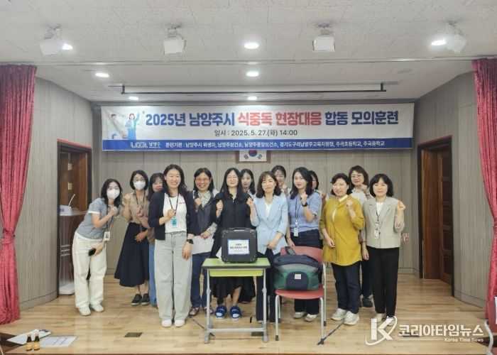 코리아타임뉴스 의료보건팀 | 남양주시는 27일 주곡초등학교에서 학교급식 식중독 사고를 가정한 ‘2025년 식중독 현장대응 모의훈련’을 실시했다.