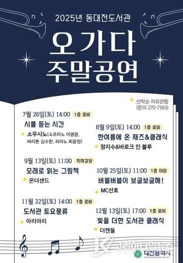 코리아타임뉴스 대전취재본부 | 대전시가 시민들의 일상 속 문화 향유 기회를 확대하기 위해 동대전도서관에서 ‘오가다’ 주말 공연을 7월부터 12월까지 매월 정기 운영한다.