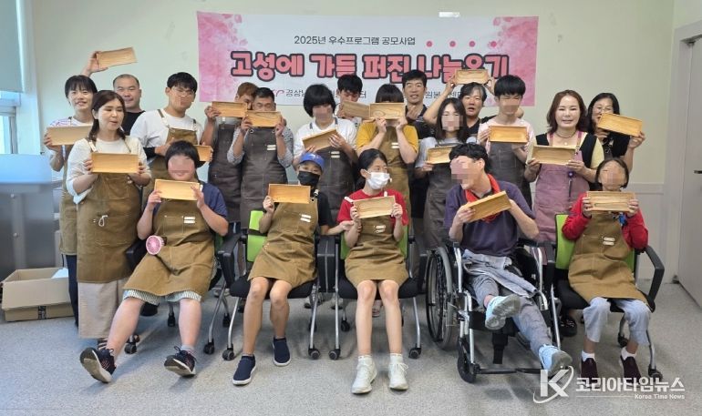 코리아타임뉴스 경남취재본부 | 고성군 자원봉사센터는 8월 17일 고성군 평생학습센터에서 장애인과 자원봉사자 30명이 함께하는 목공예 체험활동을 진행했다.