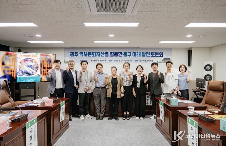 코리아타임뉴스 한장선 객원기자 | 광주광역시 동구의회는 8월 21일 동구의회 소회의실에서 '광주 역사문화자원을 활용한 동구 미래 발전 정책토론회'를 열고, 동구가 보유한 역사문화유산 보존·활용을 기반으로 한 지속가능한 도시재생 전략에 대해 논의했다고 밝혔다.