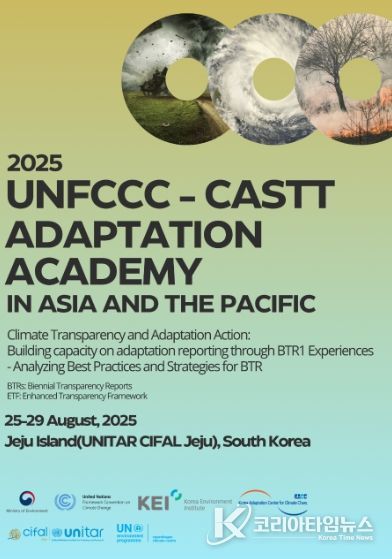 코리아타임뉴스 한장선 객원기자 | '2025년 아시아 및 태평양 지역 UNFCCC-CASTT 적응 아카데미(UNFCCC-CASTT Adaptation Academy in Asia and the Pacific 2025)'가 오는 8월 25일(월)부터 29일(금)까지 유엔훈련연구기구(UNITAR) 제주국제연수센터(소장 신성철)에서 개최된다.