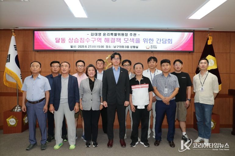 코리아타임뉴스 김태훈 기자 | 울산 남구의회 김대영 의원(국민의힘, 수암·달동)이 27일 3층 의회 상황실에서 이양임 부의장, 지역 주민과 관계 공무원이 참석한 가운데 달동 상습 침수 문제 해결을 위한 간담회를 개최했다.
