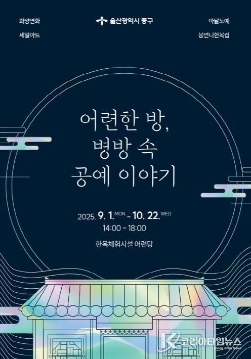 코리아타임뉴스 울산취재본부 | 울산 중구가 9월 1일부터 10월 22일까지 어련당 병방에서 ‘어련한 방, 병방 속 공예 이야기’ 전시를 개최한다.