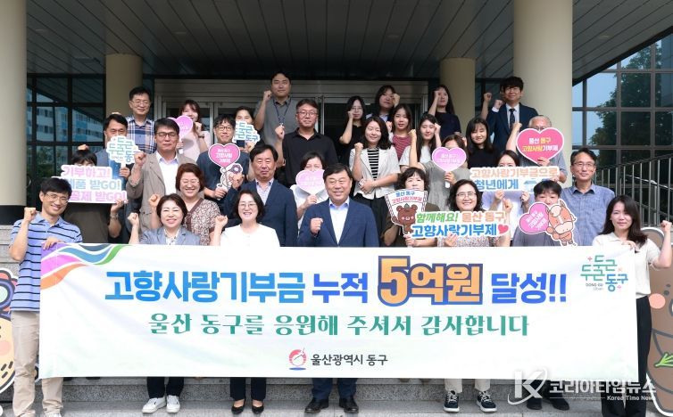 코리아타임뉴스 울산취재본부 | 울산 동구는 고향사랑기부제가 시작된 2023년 1월부터 2025년 8월 31일까지 총 3,962건의 기부가 이어져 고향사랑기부제 누적 기부금이 5억 원을 돌파했다고 밝혔다.