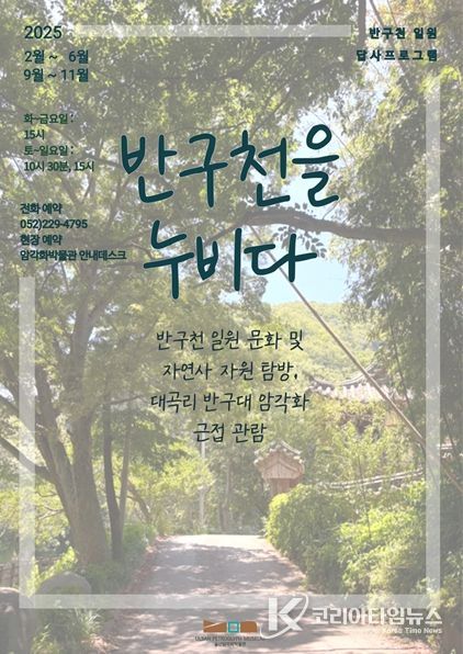 코리아타임뉴스 울산취재본부 | 울산암각화박물관은 혹서기 동안 잠시 중단했던 반구천 일원 답사 프로그램 ‘반구천을 누비다’를 이달부터 운영을 재개한다고 밝혔다.