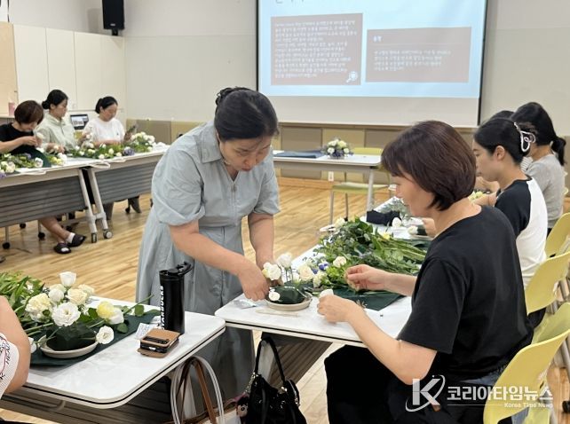 이번 힐링클래스는 플라워테라피를 활용한 ‘미니 센터피스 만들기’ 활동으로 진행했으며, 보육업무로 지쳐있는 보육교직원 스스로 심신을 회복할 수 있도록 도와 직무 스트레스를 완화할 수 있는 재충전의 기회를 제공하고자 마련했다.