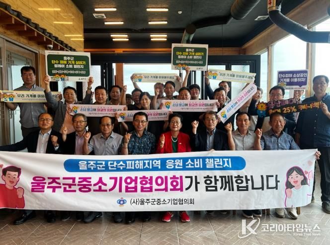 코리아타임뉴스 울산취재본부 | (사)울주군중소기업협의회는 지난 9일 집중호우로 인해 단수 피해를 입은 소상공인들을 위하여 울주군 삼남읍에 위치한 한 식당에서 9월 정기 이사회를 개최하고, ‘단수 피해 소상공인 응원 소비 챌린지’에 동참했다.