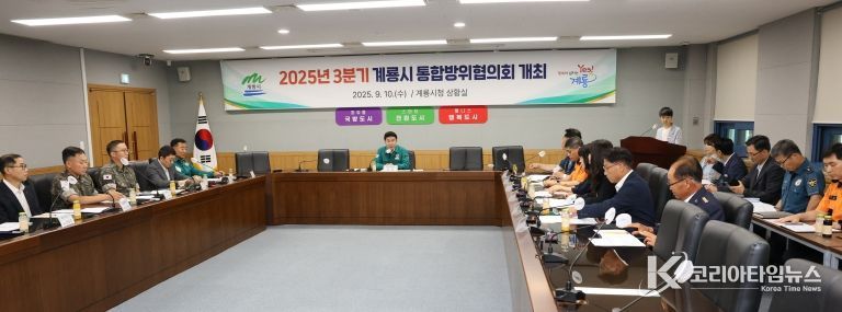 코리아타임뉴스 충남취재본부 | 계룡시는 10일 시청 상황실에서 지역 방위태세 확립을 위한 ‘2025년도 3분기 통합방위협의회’를 개최했다고 밝혔다.