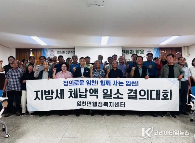 코리아타임뉴스 충남취재본부 | 부여군 임천면은 지난 10일 임천면 행정복지센터에서 각 마을 이장과 공무원 등 50여 명이 참석한 가운데 지방세 이월 체납액 일소를 위한 결의문 낭독과 결의대회를 가졌다.