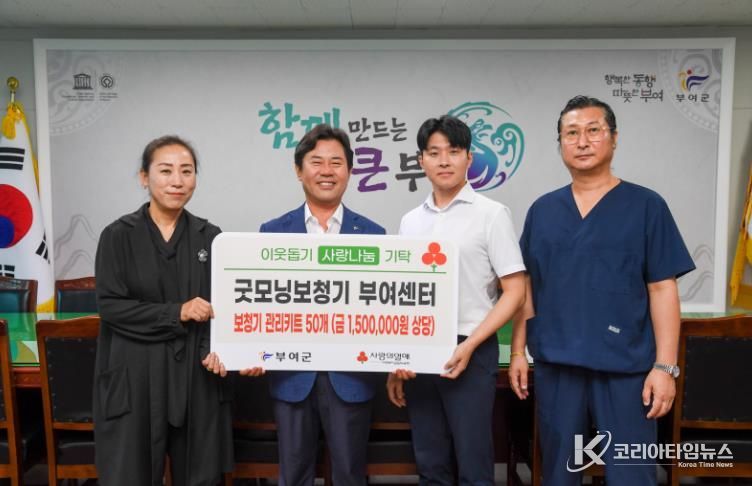 코리아타임뉴스 충남취재본부 | 굿모닝보청기 부여센터는 지난 12일 관내 저소득 난청 가구를 위한 보청기 관리 키트 50개(150만 원 상당)를 부여군에 기탁했다.