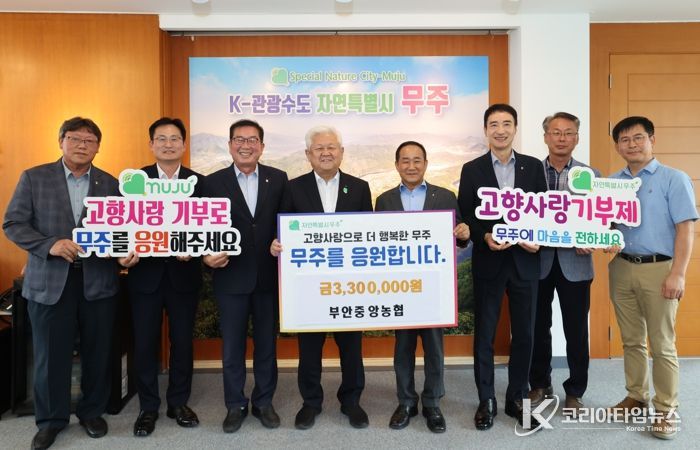 신정식 부안중앙농협 조합장은 “무주지역의 발전과 군민 행복을 응원하는 마음으로 조합원들이 십시일반 기금을 모았다”라며 “부안중앙농협은 무주군 고향사랑기부제 활성화와 지역발전을 위해 앞으로도 무주구천동농협과 지속적으로 협력해 나갈 것”이라고 밝혔다.