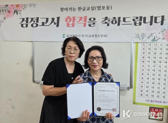 코리아타임뉴스 울산취재본부 | 울산 북구는 '찾아가는 한글교실' 염포동 수강생 주복순(71) 씨가 제2회 중졸 검정고시에 합격했다고 22일 밝혔다.