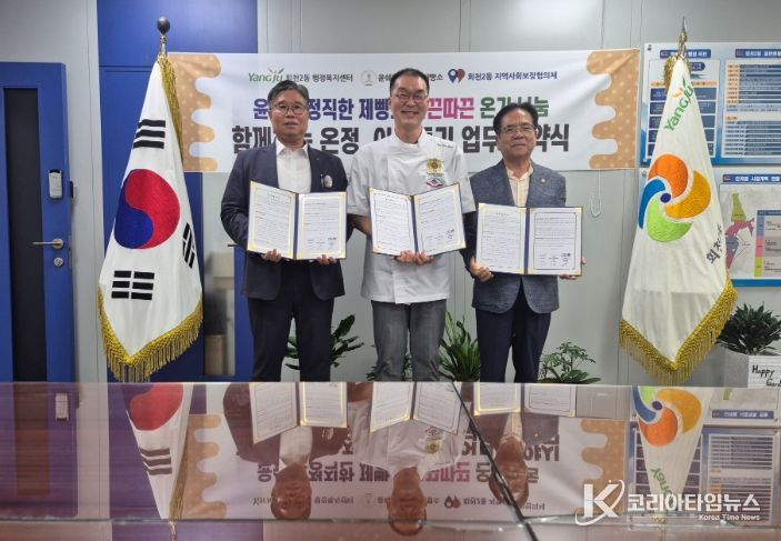 코리아타임뉴스 윤광희 기자 | 양주시 회천2동이 지난 19일 회천2동 지역사회보장협의체, 윤쉐프 정직한제빵소와 함께 취약계층 지원을 위한 이웃돕기 업무협약을 체결했다.