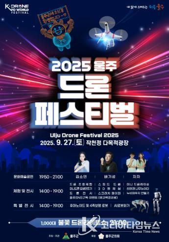 코리아타임뉴스 울산취재본부 | 울산 울주군이 오는 27일 울주군 작천정 다목적광장 일대에서 ‘2025 울주 드론페스티벌’을 개최한다고 23일 밝혔다.
