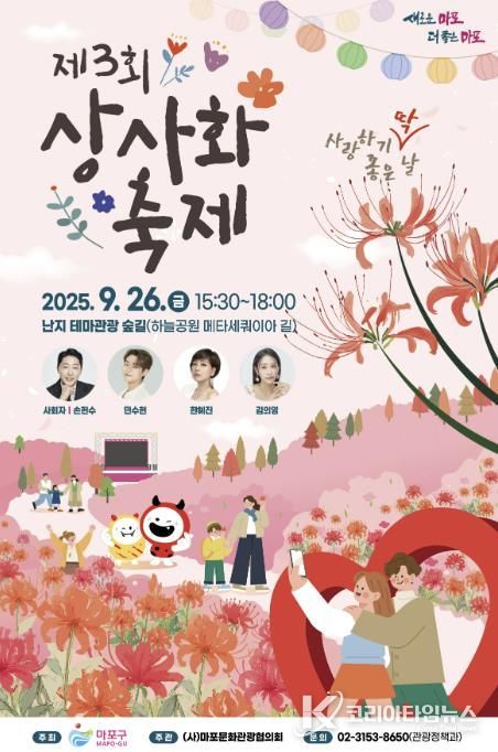 코리아타임뉴스 윤광희 기자 | 마포구는 9월 26일 난지 테마관광 숲길에서 ‘사랑하기 딱 좋은 날’이라는 주제로 (사)마포문화관광협의회 주관 ‘제3회 마포구 상사화 축제’를 개최한다.