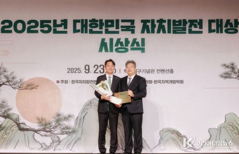 코리아타임뉴스 대전취재본부 | 대전시는 9월 23일 서울 백범김구기념관에서 열린 ‘2025 대한민국 자치발전 시상식’에서 광역자치단체 부문 대상을 받으며 지방자치 혁신 성과를 전국에 알렸다.