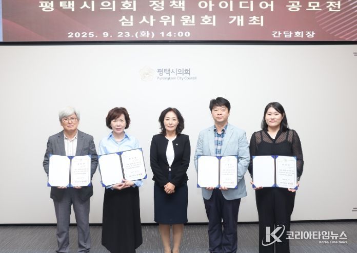 코리아타임뉴스 윤광희 기자 | 평택시의회는 23일 ‘2025년 평택시의회 정책 아이디어 공모전’ 심사위원회를 개최해 우수상 1건, 장려상 1건을 선정했다.