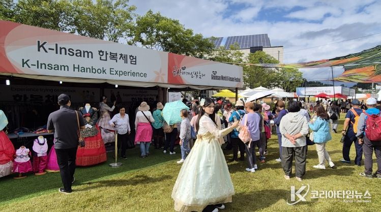 코리아타임뉴스 충남취재본부 | 제43회 금산세계인삼축제의 무료 한복체험이 인기를 끌고 있다.