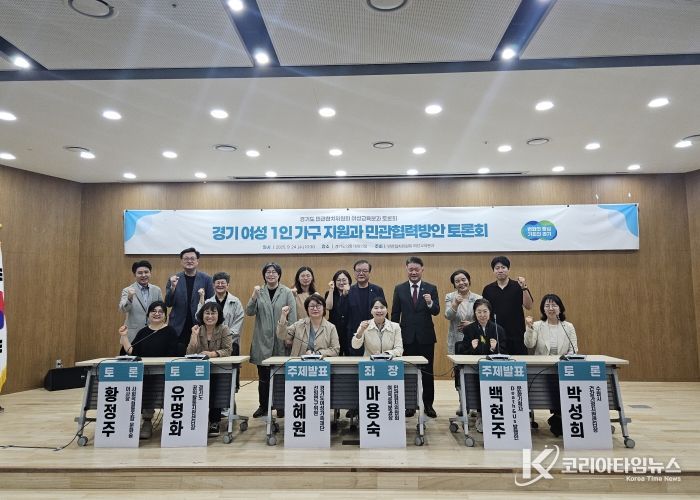 이번 토론회는 경기도 민관협치위원회 여성교육분과 주관으로 열렸으며, 경기여성가족재단, 시민단체, 현장 전문가들이 함께 참여해 여성 1인가구의 불안과 두려움을 해소하고, 정책·사회·문화적 지원 방안을 모색했다.