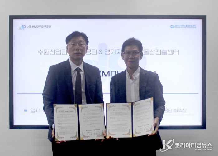 코리아타임뉴스 경제팀 | 수원산업단지관리공단은 경기지역FTA통상진흥센터와 24일 ‘수원시 기업 수출 지원을 위한 FTA·수출 업무 협약(MOU)’을 체결했다.