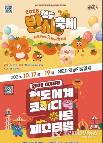 코리아타임뉴스 윤광희 기자 | 청도군 은 모두가 함께 웃고 즐기는 축제, 2025 청도반시축제 및 청도세계코미디아트페스티벌이 오는 10월 17일부터 19일까지 3일간 청도야외공연장 일원에서 개최한다고 밝혔다.