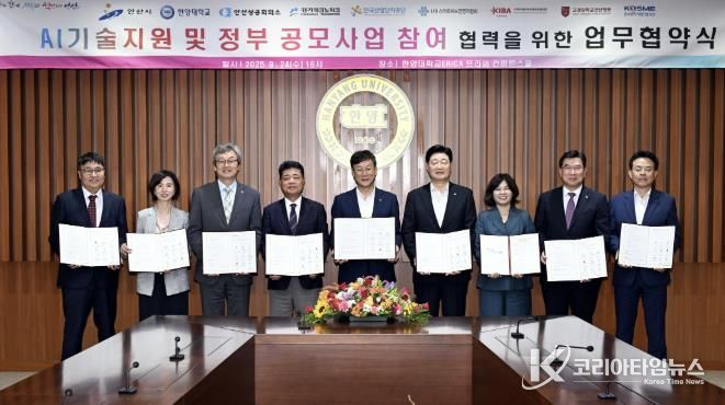 안산시는 지난 24일 한양대학교ERICA 프라임 컨퍼런스홀에서 ‘AI기술지원 및 정부 공모사업 참여 협력을 위한 업무협약식’을 개최했다고 25일 밝혔다.