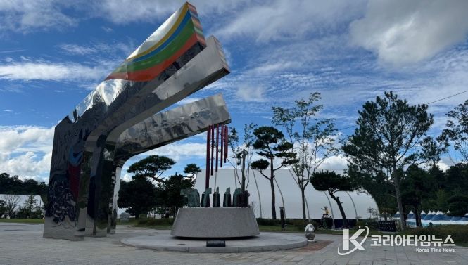 코리아타임뉴스 박찬식 기자 | 영동세계국악엑스포조직위는 영동세계국악엑스포 개막과 함께 행사장 내에 설치된 상징 조형물‘전통의 울림, 미래를 울리다’의 제막식을 26일 개최했다.