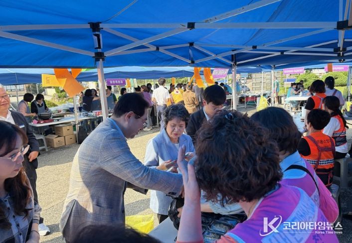 이날 바자회에서는 ▶ 찹쌀, 표고버섯 등 농특산물 ▶ 화장지, 칫솔 등 생활용품 ▶ 참기름, 미역, 만두 등 식품류를 저렴한 가격에 판매했으며 ▶ 잔치국수, 김밥 등 먹거리 장터도 운영했다.