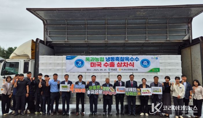 코리아타임뉴스 김태훈 기자 | 곡성군이 지난 25일 옥과농협 농산물유통센터(APC)에서 미국으로 수출하는 흑찰옥수수의 첫 상차식을 개최했다.